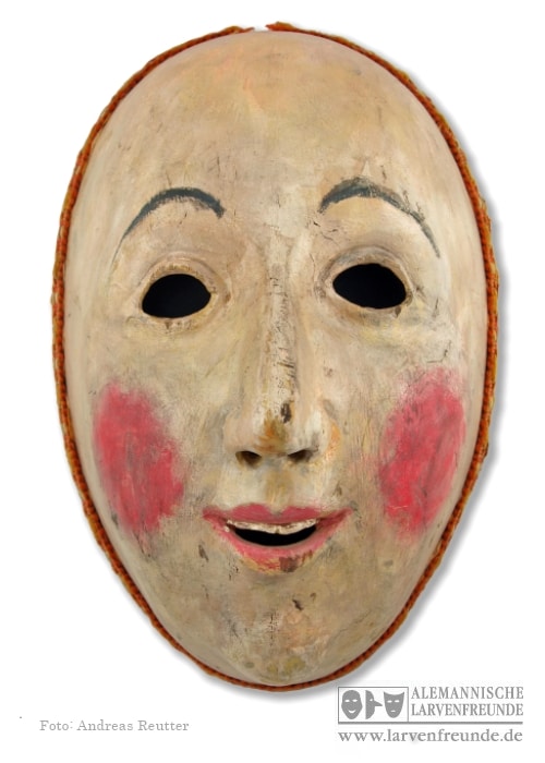 Nachbildung der Originalmaske, die aus der Mitte des 18. Jahrhunderts stammen dürfte. Die Maske des Bischöfle war vermutlich gar nicht für das Tragen an der Fastnacht bestimmt, sondern für den alten Brauch des Kinderbischofs, der am Tage der unschuldigen Kindlein (am 28. Dezember) ausgeübt wurde.